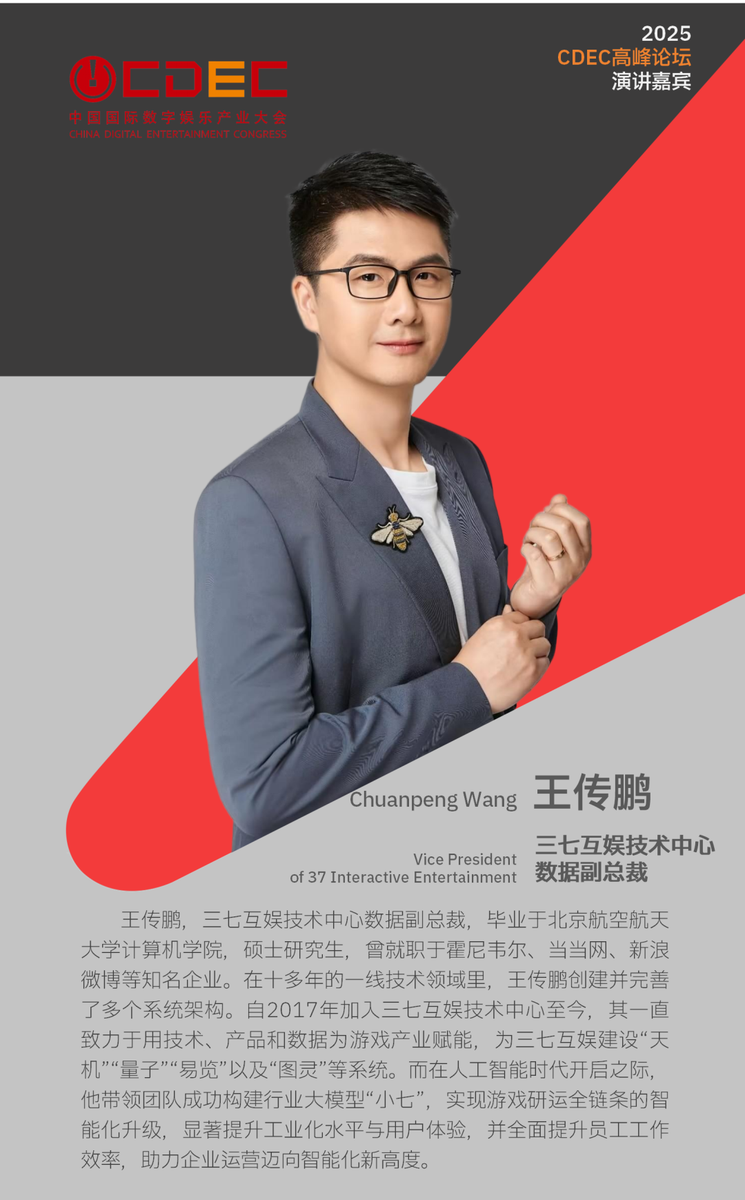 目前,已有多位重磅嘉宾确认出席高峰论坛并进行内容分享,他们分别为:世纪华通总裁 谢斐,完美世界股份有限公司首席执行官 顾黎明,昆仑万维董事长兼首席执行官 方汉,中文在线集团董事、常务副总裁 谢广才,西山居副总裁 姚喆,三七互娱技术中心数据副总裁 王传鹏,娱乐资本论创始人 吴立湘,恒星引力创始人、总裁、总制片人 张宇成,8082 Audio联合创始人 徐梧桐。