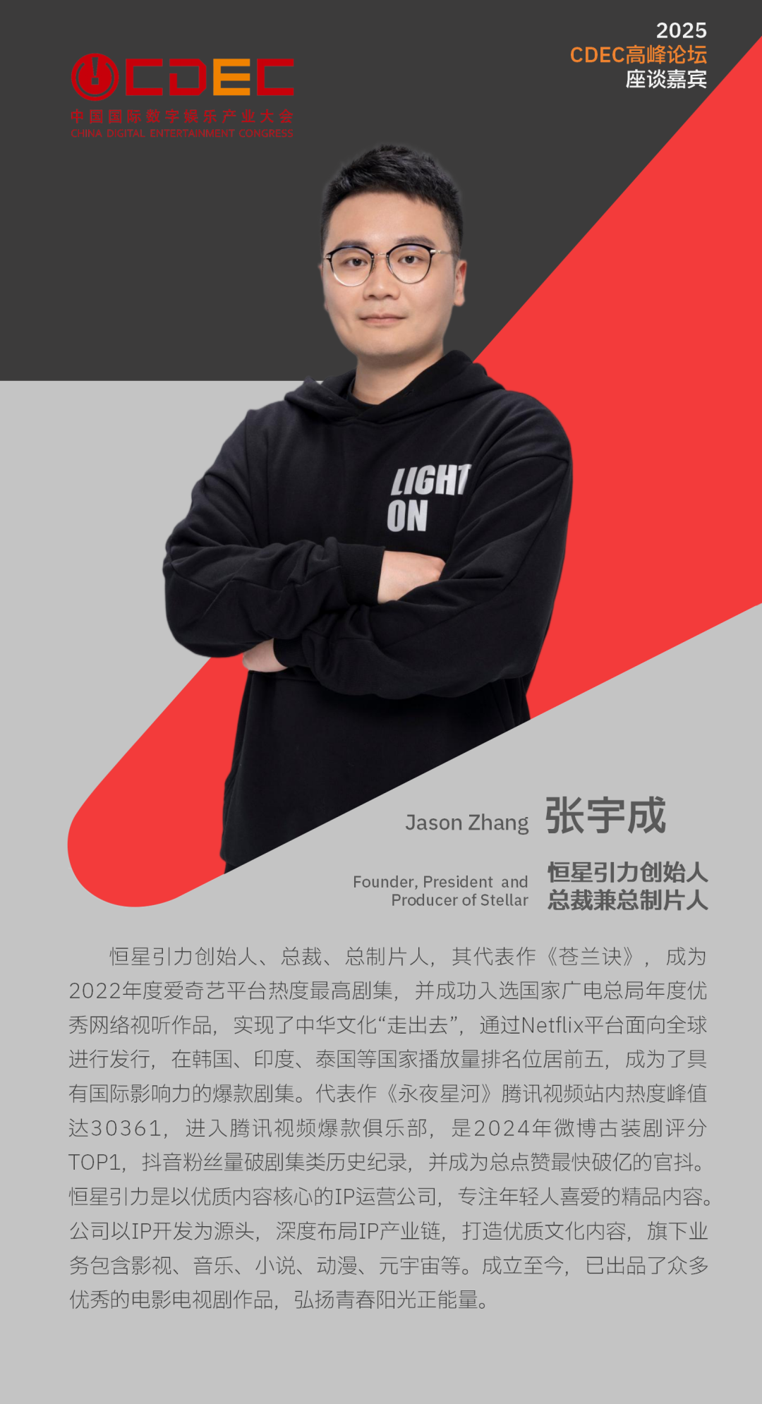 本届CDEC高峰论坛聚焦产业发展前沿领域,主题定位“聚新质动能引全球共振”,围绕“智启未来·技术赋能产业新生态”,“破界共生·构建全球娱乐新链路”两大板块内容,以多个主题发言+圆桌Panel的形式,展开研讨、分享、交流。