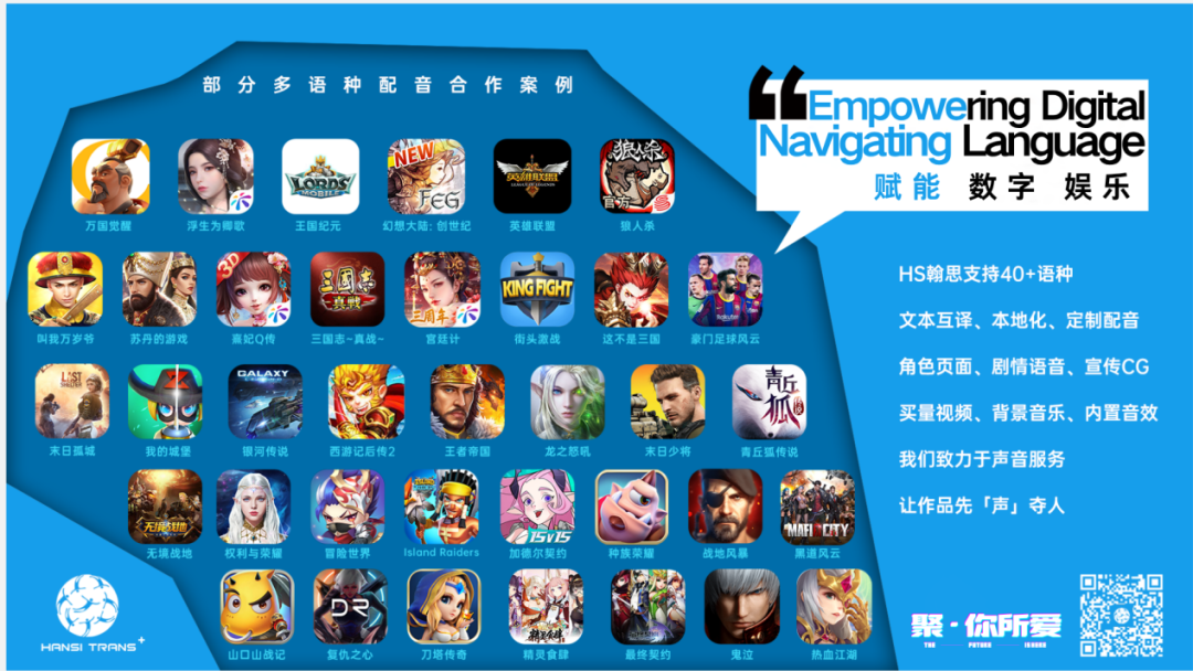 HS翰思语创诚邀全球合作伙伴莅临展位,在“聚·你所爱”的浪潮下,以语言为支点,撬动数字娱乐全球化的无限可能。共探语言服务如何赋能数字娱乐全球化,共享产业未来机遇!