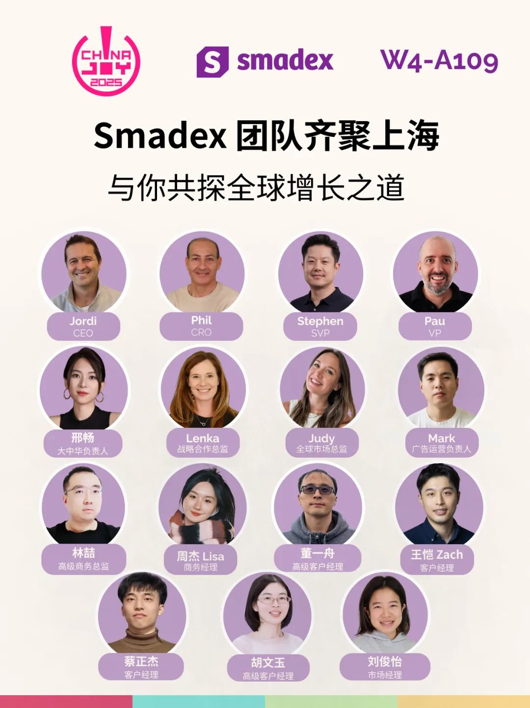 Smadex 全球团队在为期三天的展会期间,在 W4 A109 展位提供现场演示与专家咨询。与会者将获得第一手洞察,了解定制化增长策略,以及 Smadex 如何帮助游戏应用巨头在全球各市场实现增长。